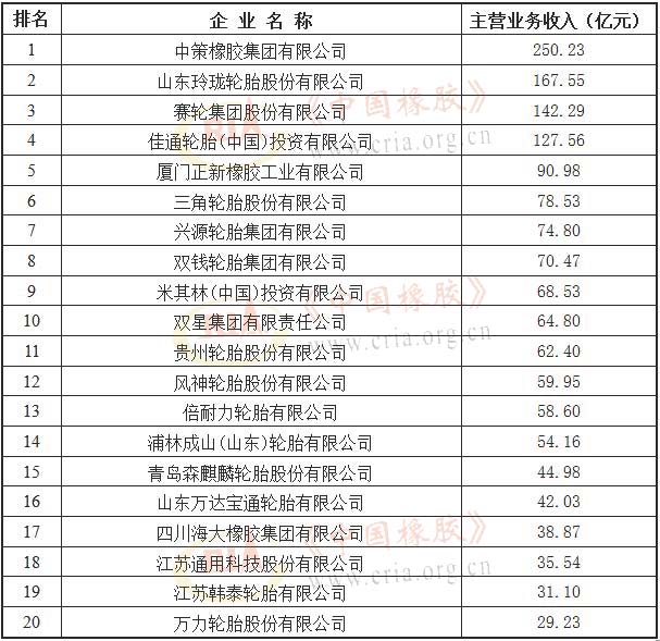 5月28日,中國橡膠工業(yè)協(xié)會在中國橡膠年會上發(fā)布了“2020年度中國橡膠工業(yè)百強(qiáng)企業(yè)”名單。該名單以2018年第四季度+2019年前三季度主營業(yè)務(wù)收入合計數(shù)進(jìn)行排序,并經(jīng)網(wǎng)上公示等程序,共有137家橡膠企業(yè)被列入“2020年度中國橡膠工業(yè)百強(qiáng)企業(yè)”。名單如下: