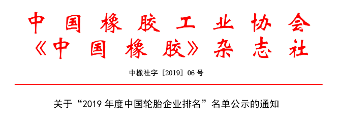 “2019年度中國輪胎企業(yè)排行榜”“2019年度中國境內輪胎企業(yè)排行榜”Z終名單,將在《中國橡膠》雜志社于8月21~23日在寧夏銀川召開的“橡膠工業(yè)綠色化數字化高質量創(chuàng)新發(fā)展高峰論壇暨2019年度中國輪胎企業(yè)排名發(fā)布會”上正式發(fā)布,同期還將發(fā)布“2019年度輪胎企業(yè)專利排行榜”。