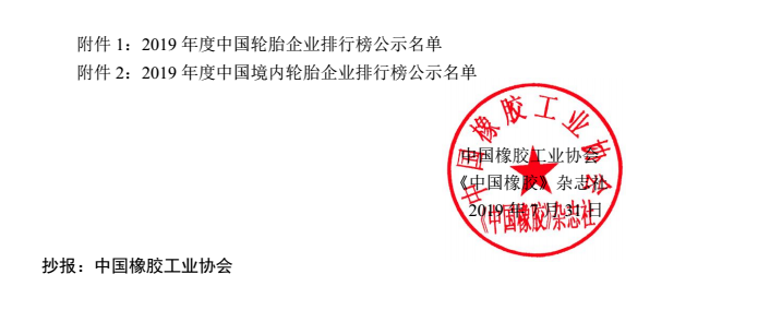 中國橡膠工業(yè)協會《中國橡膠》雜志社享有“中國輪胎企業(yè)排名”活動的所有權,任何單位和個人不得將此次公示數據用于商業(yè)活動或以其他方式使用。
